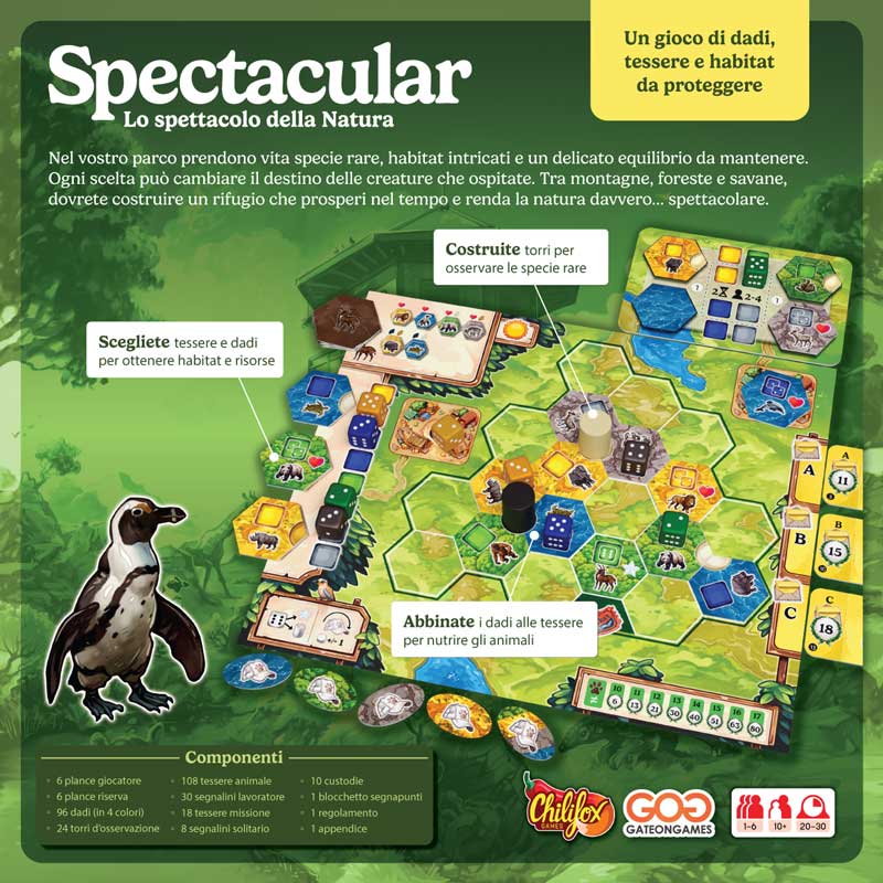 Pangolini, pinguini africani, panda giganti, leopardi delle nevi, volpi artiche, buoi muschiati... più di 20 specie animali diverse ti aspettano in Spectacular! Sei pronto a creare l'habitat perfetto per ciascuna di loro?