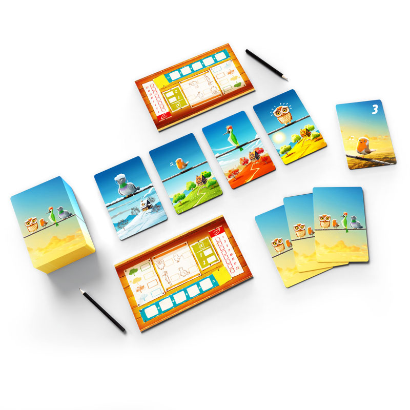 Birdie è un gioco di memoria e collezione set. Dovrai collezionare set di uccellini e stagioni, ma dovrai ricordare quali carte avrai già raccolto e in che ordine per massimizzare il tuo punteggio. Dovrai prestare molta attenzione per creare le combo e trovare la strategia vincente.