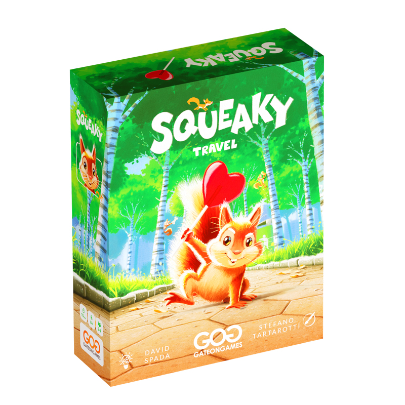 Squeaky chiude la trilogia della memoria di David Spada dopo Foxy e Birdie. L’obiettivo dei giocatori è raccogliere diversi tipi di cibo cercando di ricordare cosa hanno già messo nella loro tana, perché riempirla troppo potrebbe essere un problema!