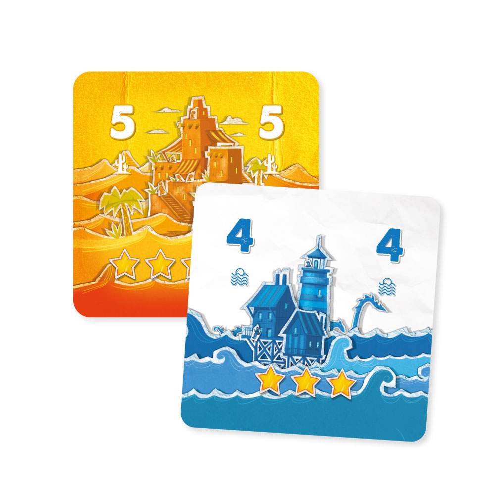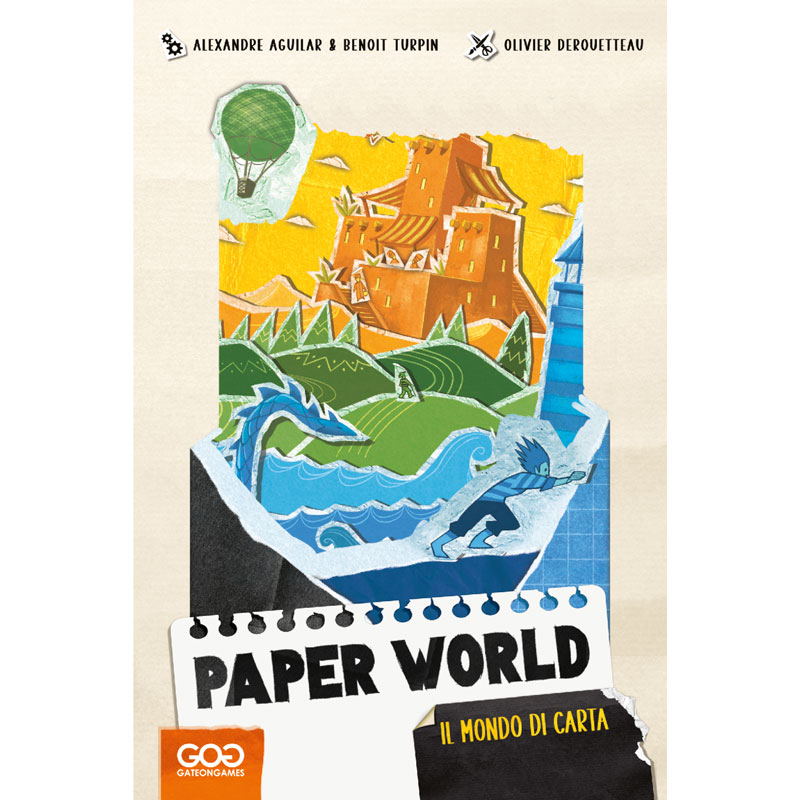 n Paper World – Il mondo di carta, ogni giocatore costruisce il proprio paesaggio disponendo carte numerate su una griglia 3x3. Le carte, colorate e numerate, vanno posizionate in pile seguendo una sequenza numerica crescente, iniziando dall’1. Durante il turno si può scegliere se pescare carte dal centro del tavolo, prendendo tutte quelle dello stesso colore o dello stesso numero, oppure giocarle nel proprio paesaggio rispettando le regole di posizionamento. È possibile saltare un numero scartando una carta o utilizzando il segnalino forbici, che consente di aggirare questa limitazione ma blocca temporaneamente la pila su cui viene usato. Le regole sono semplici, ma ogni scelta ha un peso strategico.