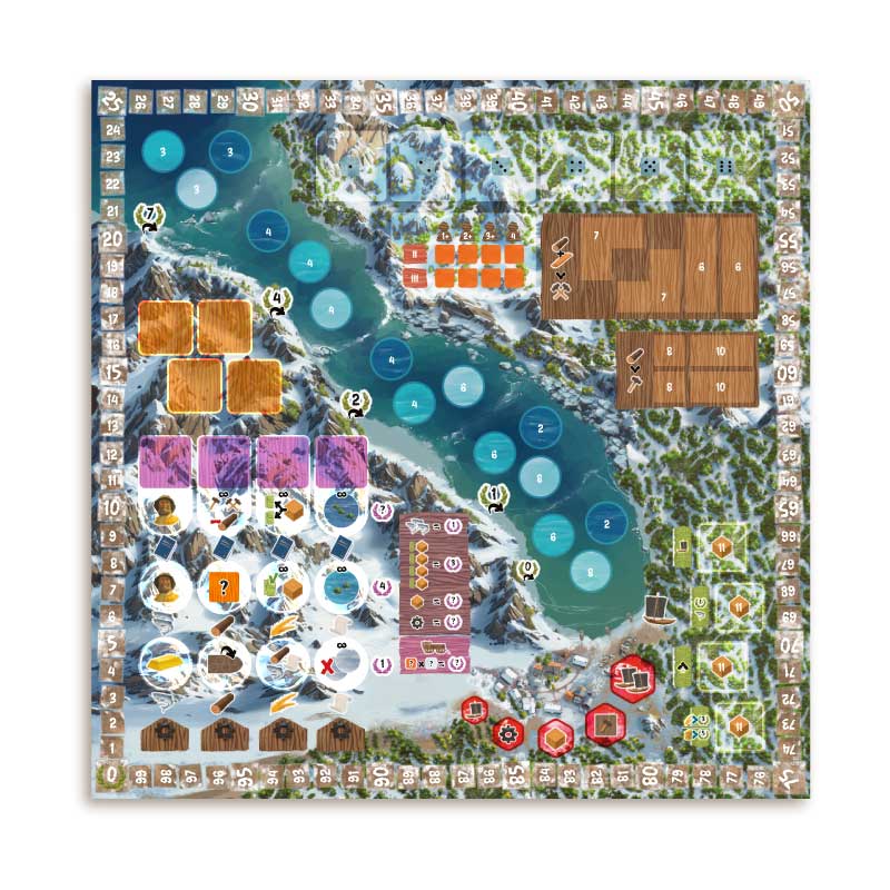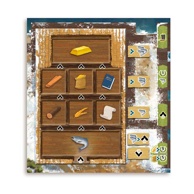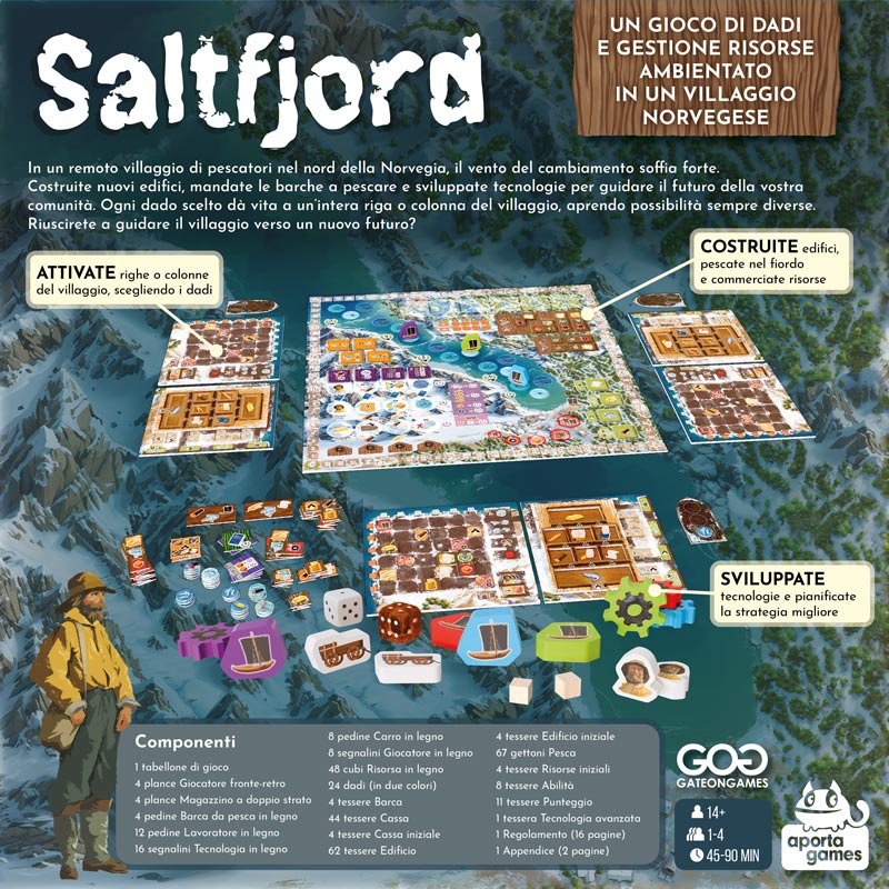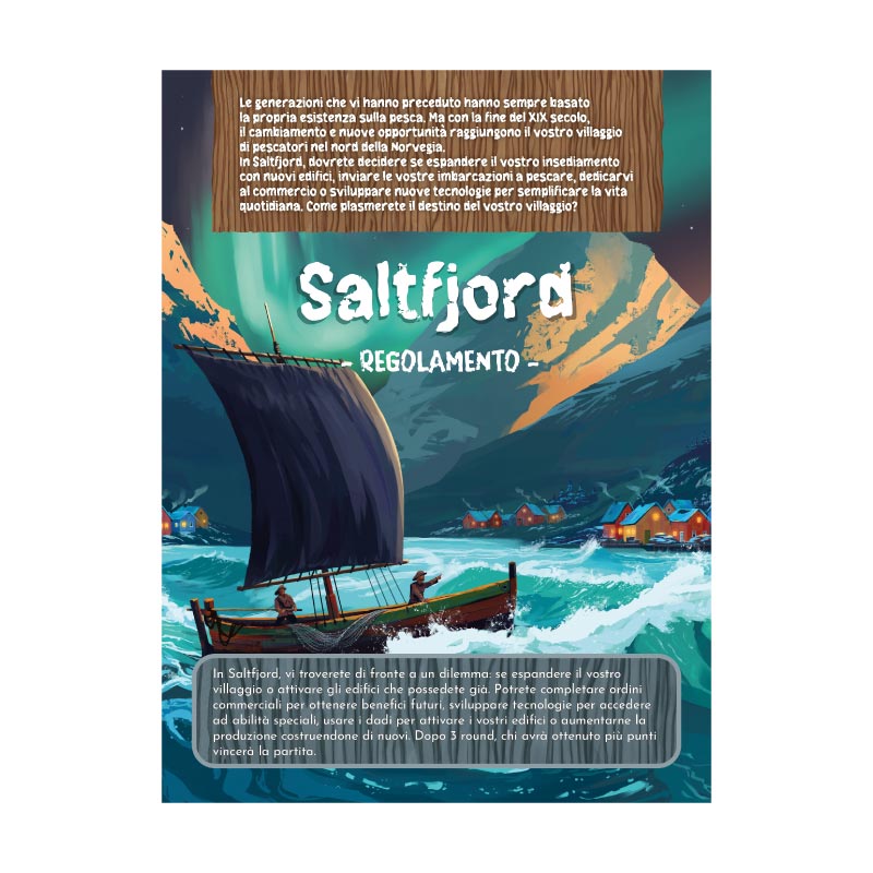 In Saltfjord, starà a te decidere se espandere il villaggio con nuovi edifici, mandare la tua barca a pescare, avviare scambi commerciali o sviluppare tecnologie per rendere la vita quotidiana più facile. Piazza i dadi e scegli come guidare il futuro del tuo villaggio!